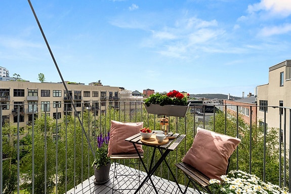 - Solrik balkong og fransk balkong med flott utsikt
