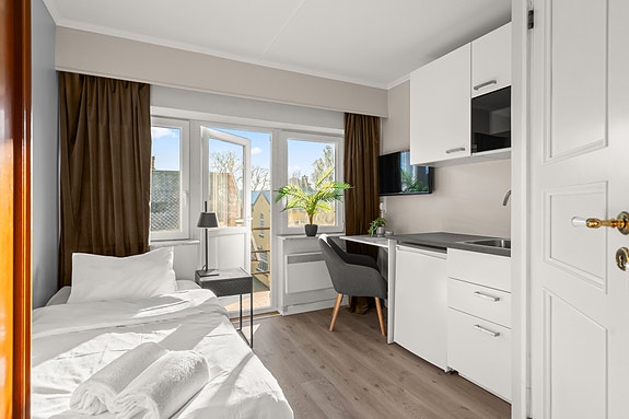 Våre moderne og koselige enkeltrom fra 8500,- NOK tilbyr alt du trenger for et komfortabelt og praktisk opphold. Med en lys og trivelig atmosfære, og en rolig beliggenhet, er du likevel bare et steinkast unna det beste Fredrikstad har å by på.