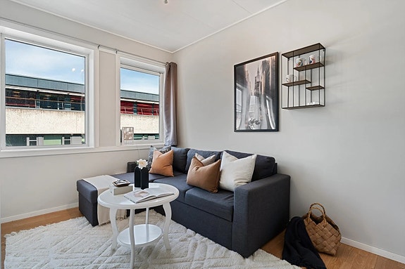 Den er lys og trivelig, med arealeffektive løsninger. Leiligheten har lyse overflater. Det er varmekabler på bad. Det medfølger egen bod i 2. etg. Det er også fellesvaskeri i 2. etg. Lite strømforbruk da varmtvann er inkludert i leie.