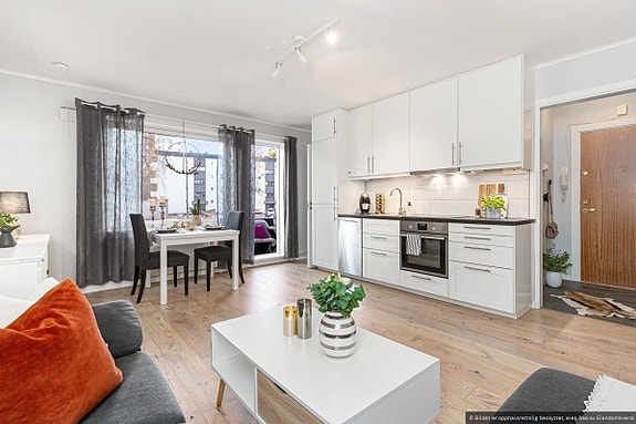 Leiligheten består av entré, stue med åpen kjøkkenløsning, bad, soverom og balkong. Den ble modernisert i 2015 og fremstår som lys og velholdt med praktiske løsninger.