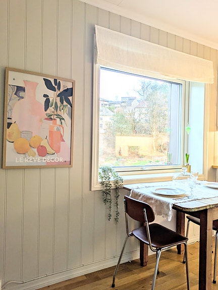Jeg ønsker å leie ut et soverom i leiligheten min. Jeg bor her selv, og leietager vil hovedsakelig ha adgang til kjøkken og bad. Kjøkkenet er på ca 12 kvadratmeter og har lenestol, slik at det går an å bruke det som stue. Når jeg er på jobb (hverdager 8-16) eller vekkreist, vil leietager ha tilgang til stuen og terrassen også. Jeg ønsker å finne en leietager som er ryddig og renslig. Ser hovedsaklig etter personer som vil bruke leiligheten til pendlerleilighet. Selv er jeg 39 år og jobber som psykolog. Ta gjerne kontakt for mer informasjon! Det er også mulig å leie for en kortere periode, minimum 1 mnd.