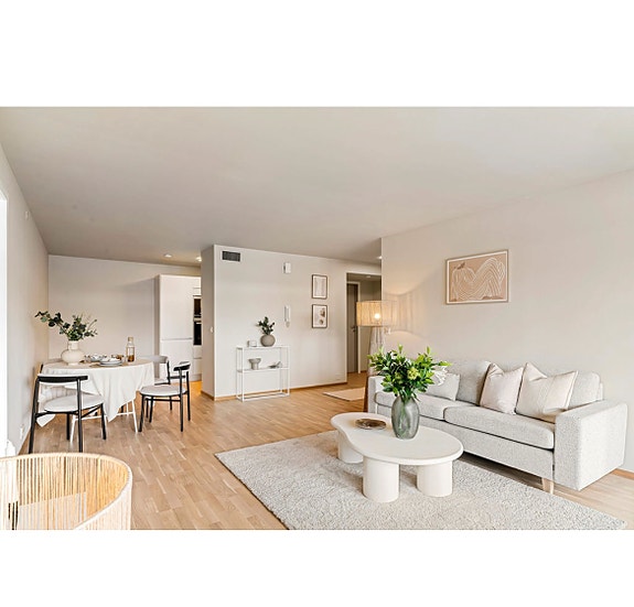 Leiligheten ligger i en rolig gate, i andre etasje, i leilighetskompleks. Den oppleves lys og luftig med innglasset balkong. Den har to soverom, det ene noe større enn det andre. Leiligheten er vesentlig modernisert og leies ut fullt møblert, inkl hvitevarer. Det er god lagringsplass (3 boder), og tilhørende P-plass i P-hus med tilgang til el-lader. Heis.