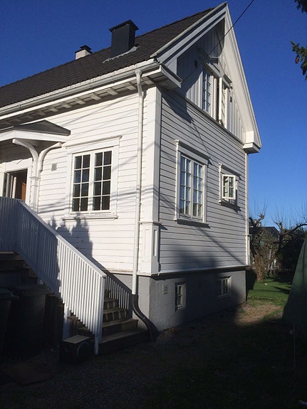 Huset har en stor stue med spisebord og peis, et mindre kjøkken, et stort bad med toalett og dusj, og et ekstra bad med toalett. Leien er totalt 24 000 kroner delt på tre. Strøm og internett er ikke inkludert.