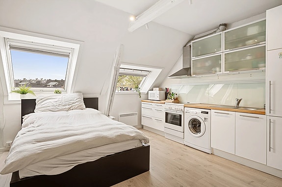 Møblert hybel i 5 etasje, som ligger i et attraktivt og svært stille område i Oslo. Her har man rask tilgang til Bogstadveien, Frognerparken, kollektivtransport, søndagsåpen matbutikk og treningssenter. Hybelen har mulighet for sykkelparkering i bakgården. Hybelen har åpen stue- og kjøkkenløsning med gode lysforhold. Hybelen er fullt møblert, men har mulighet for sofa/sovesofa, bord og en liten spisegruppe, dersom leietaker har dette selv. Kjøkkenet har innredning med hvite, høyglansfronter og heltre benkeplate. Kjøkkenet har integrert kjøleskap med fryser, komfyr og vaskemaskin. Badet er flislagt i tidløse farger og har varmekabler i gulvet. Baderomsinnredningen er fra 2020. Varmtvann, strøm og internett inkludert.