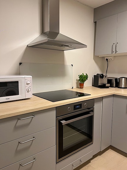 Leies ut møblert med fullt utstyrt kjøkken og integrerte hvitevarer: kjøleskap med fryser, stekeovn, oppvaskmaskin og vaskemaskin med tørketrommel. I tillegg er det mikrobølgeovn, vannkoker, brødrister, kaffemaskin og støvsuger. Stor og lys stue med smart-TV. Det er helt ny varmepumpe i stua. Det er lagt inn fiber fra Altibox, abonnement tegnes selv.