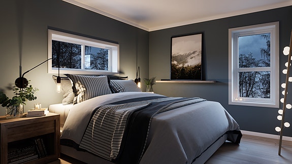 Eksempel av hvordan hovedsoverom kan møbleres.