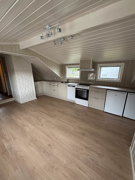 Pen leilighet med egen liten balkong. skrå tak, lav høyde på bad. Stue og kjøkken pusset opp med nytt kjøkken. Alt av hvitvarer følger med: kjøleskap, fryse, oppvaskmaskin og vaskemaskin med tørketrummel.