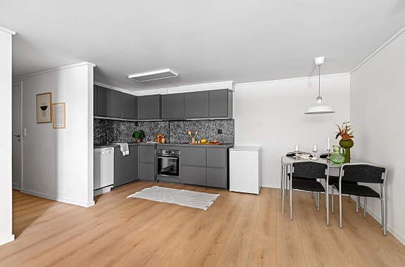 Leiligheten er renovert I 2021 med god standard og nøytrale fargevalg.