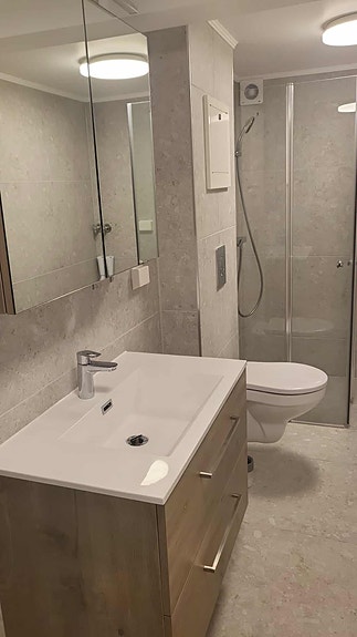 Vi leier ut helt ny og moderne 1-roms hybel med smarte løsninger for maksimal utnyttelse av plassen. Hybelen ble ferdigstilt i juli 2025 og er tilknyttet enebolig. Den er lys og romslig med store vinduer, har egen inngang og består av entre, oppholdsrom, kjøkken med integrerte hvitevarer samt et flott stort bad med dusj, toalett, vask og opplegg til vaskemaskin.