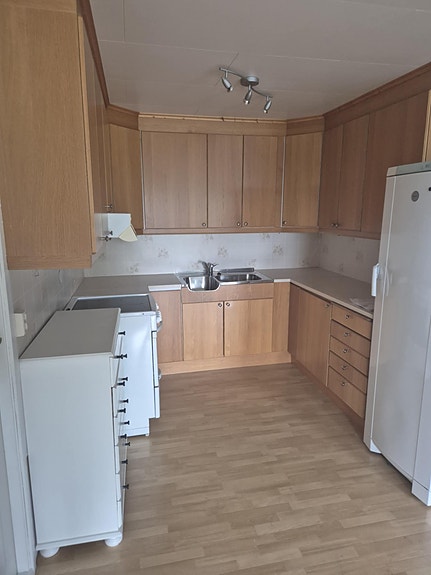 Kan komme delvis møblert om ønskelig. Kjøkkenet har kjøleskap og komfyr.