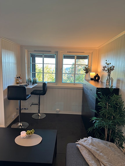 Nyoppusset hybel i sokkeletasje på enebolig på Hovet med flott sjøutsikt. Rolig nabolag, innerst i vegen, umiddelbar nærhet til Uræddløypa. Egen inngang.