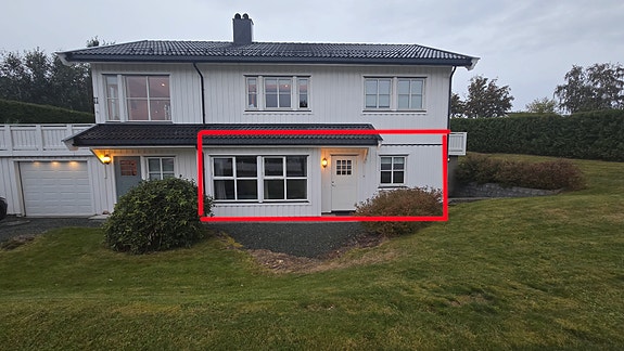 I hoveddelen bor vi to unge voksne. Mulighet for parkering av en personbil på tomten.