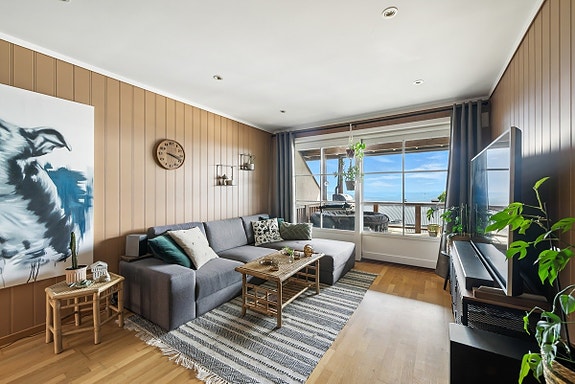Lifjellvegen 399B en er lun og fin leilighet med to gode soverom, romslig stue med utgang til stor veranda med fantastisk utsikt, kjøkken med god plass og bad med gulvvarme. Det er en bod på samme plan som leiligheten. Felles parkeringsplass