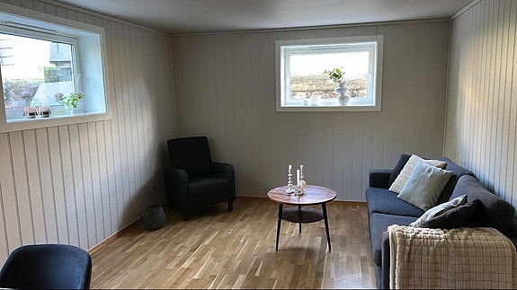 Fin sokkelleilighet nyoppusset med 2 soverom, oppvaskmaskin og flislagt bad.
