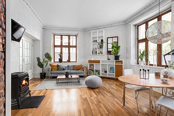 Furnished 2-bedroom apartment available for rent over the winter months. Renting for cheaper since it’s short-term and my priority is finding a person or couple to take good care of the apt over the winter. The apartment is located on the quiet upper part of Markveien in Grünerløkka, has extra-wide windows, a nice view, heated floors in the living room, and a wood-burning stove. The apt is currently undergoing partial renovations (new floors etc), so it will look slightly different (and better) than the photos. The bathroom includes a bathtub and a washer/dryer. No pets or smoking.