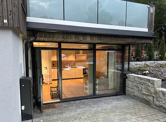 Studioleiligheten er i helt nytt hus fra 2023 med nytt bad og kjøkken. Den har separat inngang fra bakkeplan med store vinduer fra gulv til tak som gir godt naturlig lysinnslipp, og har smarte løsninger for god romfølelse. Studioleiligheten har en lys og luftig atmosfære som følge av de store vindusflatene, samtidig er det bekostet lystette gardiner for å sikre god søvnkvalitet. Det er et stort uteområde tilknyttet inngangen.