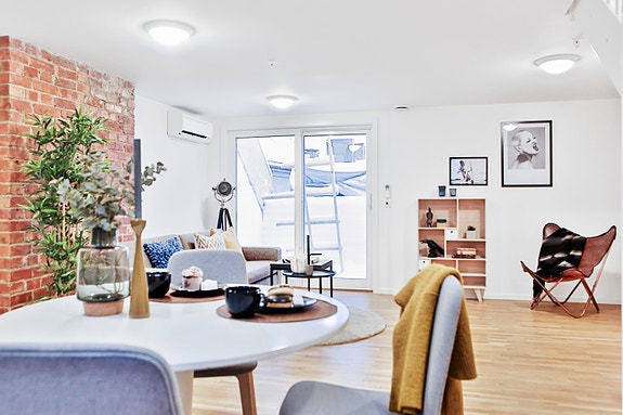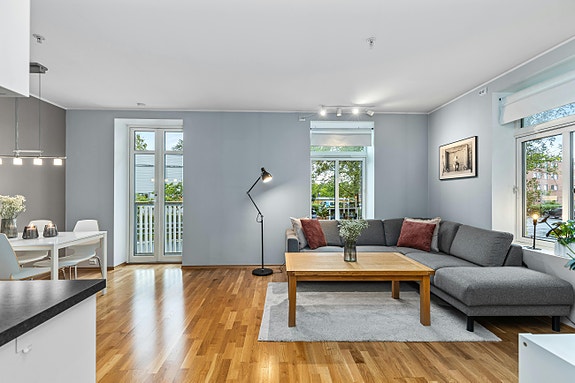 Veldig fin, koselig og praktisk leilighet. Relativt ny, bygget helt nytt i 2019'. Koselig terrasse tilhørende leiligheten + felles takterrasse. Stor og fin stue/kjøkken. Bra med skapplass + bod i kjelleren.