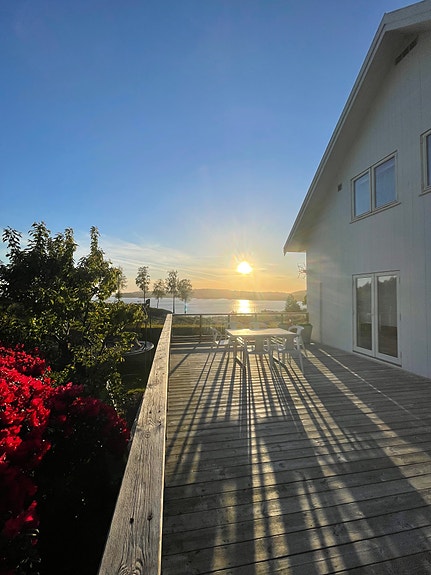 På øyen Fogn i Ryfylke kan du nå leie enebolig med stor terrasse og gode solforhold. Boligen har påkostede detaljer som innebygde skap, heltre gulv, utvendig solscreens på store vinduer og bred benkeplate på kjøkken. Boligen består av to oppussede etasjer og kjeller med oppbevaring og tørketrommel. Boligen varmes med peisovn og varmepumpe. Det er stor hage med plass til trampoline, fotballbane, sandkasse og alt små barn måtte ønske seg.