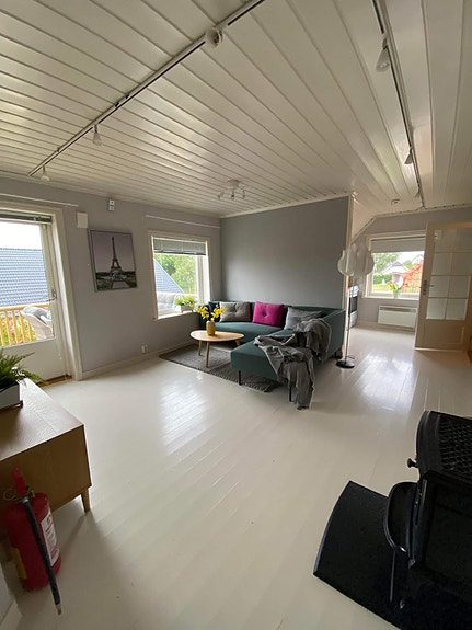 Andre etasje i bolighus leies ut. Stille og rolig og ordnede forhold. To soverom, stue og kjøkken i ett. Inkl stekeovn, kjøleskap m frys og vaskemaskin. Egen inngang. Koselig balkong med fin utsikt. Peis. Nydelige strender og treningssenter på baneanlegget 2 min og gå samt god bussforbindelse direkte til byen. Det er ikke parkeringsplass.