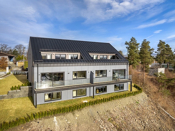 Dette er en topp moderne halvdel av 2 mannsbolig som er nyoppført, ingen har bodd her. Boligen har vannbåren varme, og ellers har boenheten meget høy standard. Det er 3 bad og 5 soverom i enheten