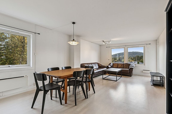 Det som står i leiligheten er: Sofa, sofabord, spisebord, spisestoler, bokhylle, seng og kommode. Dette kan tas ut etter ønske fra leietaker.