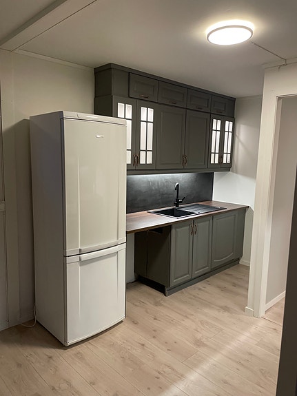 Lys og trivelig sokkelleilighet på ca. 60 m² leies ut. 1 soverom, stue, kjøkken, bad og bod. Delvis møblert med egen inngang, internett inkludert. Gulvvarme på stue, kjøkken og bad