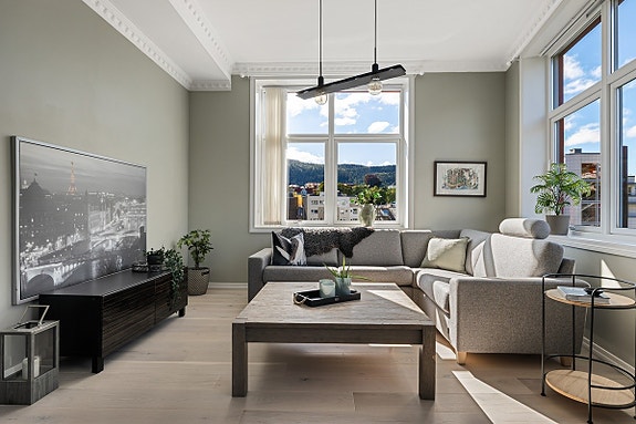 Velkommen til denne lyse og moderne 3-roms leiligheten i populære Møllendal. Leiligheten ligger i 4. etasje og er på 68 kvm, med en gjennomført planløsning som kombinerer klassiske detaljer med moderne standard. Store vindusflater og ca. 3 meter takhøyde gir en luftig og behagelig atmosfære.