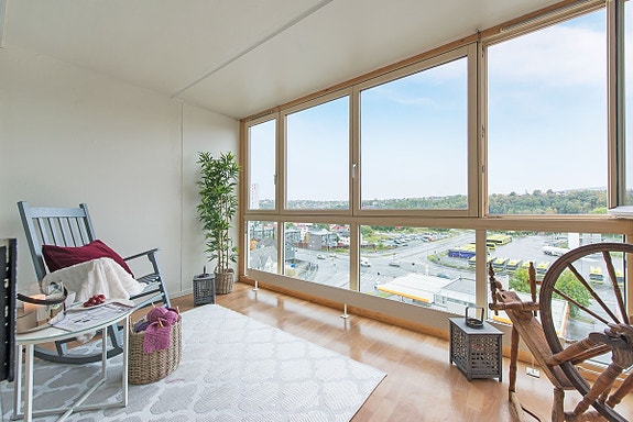 Lys og fin leilighet med Innglasset veranda ledig fra 01.05.26. Egen lagringsbod i korridor og kjeller. Tidsubestemt leiekontrakt med 3 mnd gjensidig oppsigelse fra den 1. i hver måned. Stort parkområde med sosiale møteplasser og tuftepark. Mulighet for leie av garasjeplass med lading.