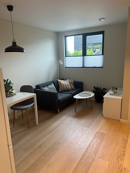 Fin, moderne og om ønskelig fullt utstyrt 2-roms hybel i bolig til utleie fra 1. januar 2026.