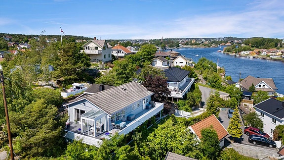 Enebolig over 2 plan med sentral beliggenhet | Etablert boligområde | Stor, solrik terrasse/ tomt | Elveutsikt | Garasje