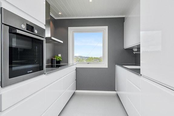 Følgende hvitevarer medfølger: kombiskap, komfyr, oppvaskmaskin, vaskemaskin.