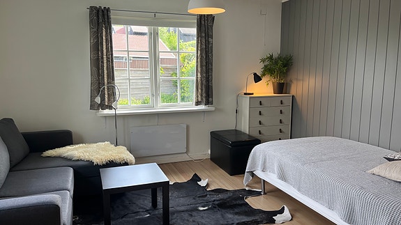 Hybelen på 35 kvm er møblert. Den separat inngang, er 50 m fra buss holdeplassen, nær skog og lysløyper.