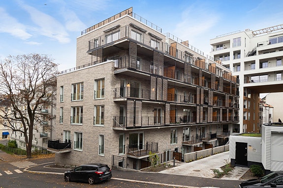 Leiligheten er plassert i 5. etg og har utsikt mot Akersbakken. Inneholder gang, bad, stue med åpen kjøkkenløsning og tre soverom: soverom nr 1 med walk-inn garderobe, garderobeinnredning og eget bad med opplegg til vaskemaskin og soverom nr 2 og nr 3 med egne garderobeskap. HTH-kjøkkenet inneholder hvitevarer som integrert kombiskap, integrert stekeovn, induksjonskoketopp og integrert oppvaskmaskin. Leiligheten har 2 balkonger. Alle rom har parkett og vannbåren gulvvarme.