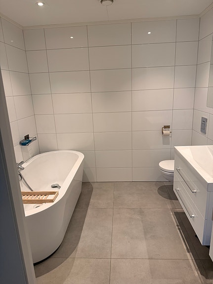 Fullt møblert: sofa, spisebord, senger, hvitevarer, vaskemaskin, m.m.