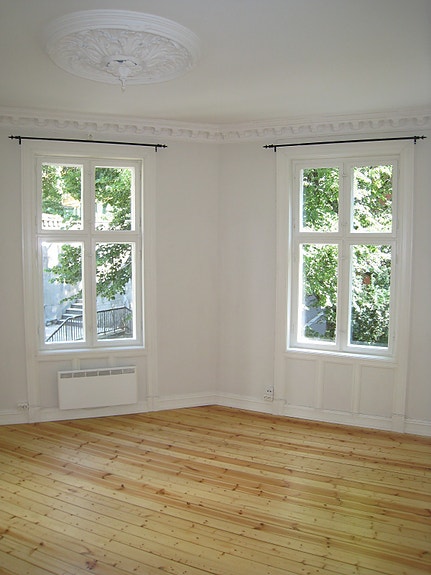 Stue (eller soverom nr. 3 om du vil) har både rosett og stukkatur i taket og en takhøyde på 300 cm. De to andre soverommene har også stukkatur og samme takhøyde. Tilsammen fem forskjellige IKEA-klesskap følger med og to av de er plassert i entrèen per i dag. Hele leiligheten har lakkerte originale tregulv.