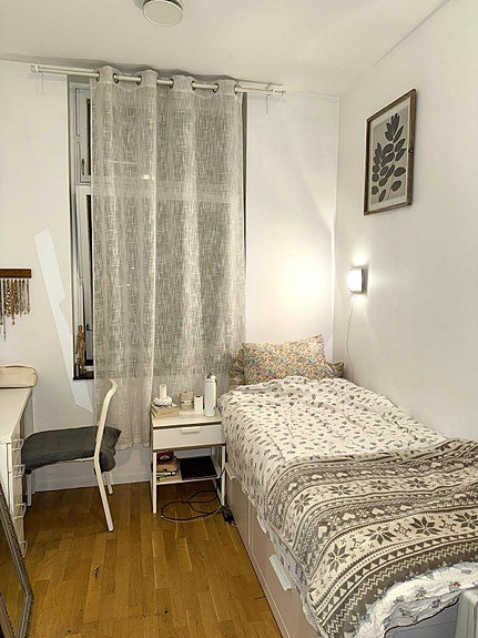 Leiligheten er møblert, og rommet som leies ut er også møblert med et skap og en seng (som kan åpnes og bli til et dobbelseng). Andre møbler på rommet skal selges, så ved intresse kan det kjøpes for en rimelig pris og bli igjen på rommet.