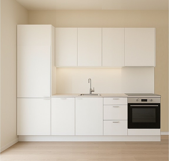 Moderne kjøkken med slette fronter og integrerte hvitevarer (Bildet er en illustrasjon, avvik vil forekomme)