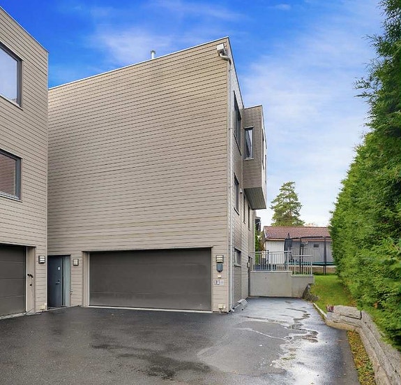 Inngang til venstre for garasjeport.