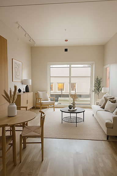 Bilde er møblert ved hjelp av AI for å skape ett inntrykk av hvordan leiligheten kan møbleres.