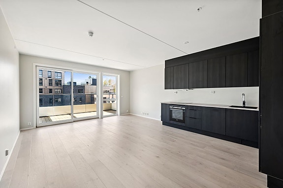 Helt ny 4-roms med gjennomgående høy og moderne standard. Her bor man i et område i stor vekst, rett ved buss, dagligvare, treningssenter og marka. Leiligheten ligger i 5. etasje, med heis og sydvestvendt, solrik balkong på 8.5 kvm.