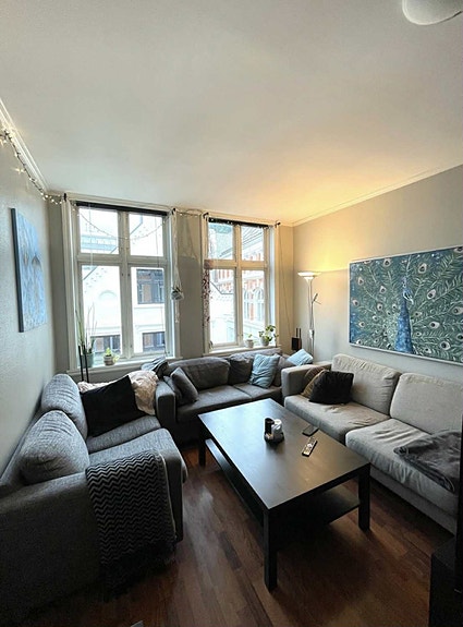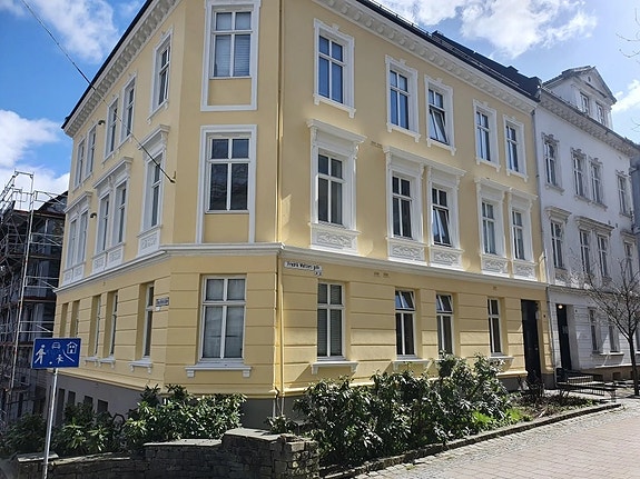 Leiligheten ligger sentralt i et klassisk og koselig Bergenssmau ikke så langt unna inngangen til Fløybanen. Den har fire soverom, to bad med dusj og en stue/kjøkken, i tillegg til vaskemaskin og tørketrommel. Strøm og internett kommer utenom leien.