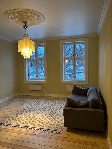 Leiligheten er nyoppussing og furugulv er slipt/lakkert på soverom og stue. Nytt kjøkken med hvitevarer, flott tregulv, nymalte flater i alle rom, og funksjonelt baderom med vaskemaskin. Leiligheten leies ut delvis møblert fra 1 februar med garderobeskap soverom og sofa i stue. Leiligheten har store vinduer som gir godt lys uten gjenboere, og vi er også åpne for korttidsutleie - min 6 mnd.