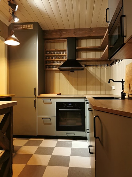 På badet og soverommet er det varmkabel i gulvet. Nytt dusjkabinett er montert på badet. Leiligheten inneholder kombinert vaskemaskin og tørketrommel. Kjøkkenet er utstyrt med stekeovn, oppvaskmaskin, komfyr, avtrekksvifte, mikrobølgeovn og vannkoker. Det som vises på bildene er tilgjengelig i leiligheten.