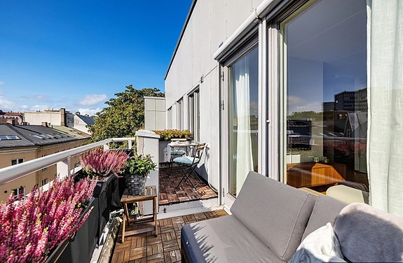 Boligen har heis, dørtelefon, balkong, tilgang til felles takterrasse, ikke-røyk , sentralt , utsikt , rolig , moderne , solavskjerming , turterreng, opplegg for internett.