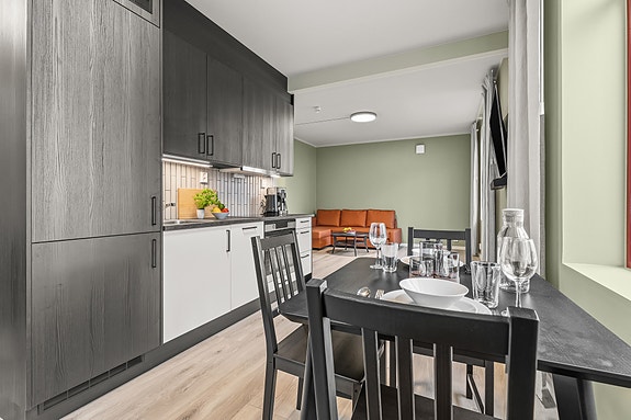 Telemark Apartments offers modern 2-, 3- and 4-room apartments for short-term rent in the heart of Porsgrunn. Our apartments are ideal for both business trips and holidays — accommodating up to 3 guests for work stays and up to 4 guests for leisure stays.
