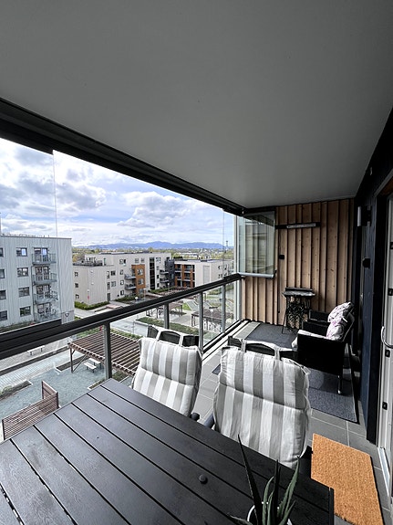 Dette er en nyere selveierleilighet fra 2021 med gjennomgående høy standard. Leiligheten ligger solrikt til i 4. etasje, med god utsikt og en stor, inn glasset veranda på hele 12 m² som man kan lukke og åpne som man vil – perfekt som en lun vinterhage hvor du kan nyte dagslys selv på kalde dager.