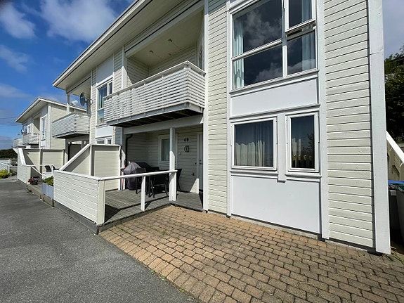 Leiligheten har solrik beliggenhet og trappefri adkomst . Egen parkering med billader rett utenfor. Inneholder stue med åpen kjøkkenløsning, 2 sov, stort bad med plass til vaskemaskin og tørketrommel. Bod inne og ute. Sentralstøvsuger. Varmekabler i alle gulv. Bredbånd innlagt. Leies ut umøblert. Langtidsleie