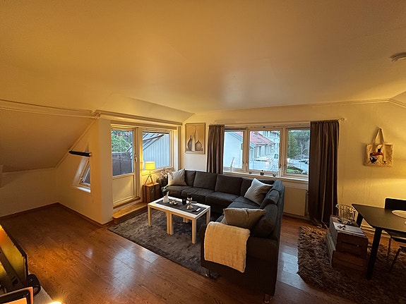 Fullt møblert, alt på bildene er inkludert i leien, innflytningsklar. Fra leiligheten er det gangavstand til gode service- og kollektivtilbud samt flotte grøntområder og turstier. Her bor du svært sentralt med kort vei til byen, samtidig tilbaketrukket og rolig i flotte grønne omgivelser. Her bor man idyllisk til med marka som nærmeste nabo i grønne og rolige omgivelser, samtidig som man har god kollektivtransport og servicetilbud innen kort avstand