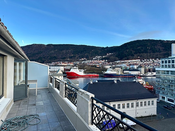 En sjelden penthouse-leilighet på idylliske Nordnes – med to private takterrasser, én på hver side av leiligheten. Her får du både morgensol og kveldssol, utsikt mot Vågen, og en sjelden romslighet i et av Bergens mest attraktive områder.