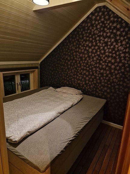 Soverommet er nyoppusset og delvis møblert med dobbel seng (1.8x2m) og liten kommode for klær, men egne møbler kan også benyttes. Du må være renslig, ryddig og forholdsvis rolig. Takterrasse med muligheter for å få litt luft og sol eller se på stjernene.